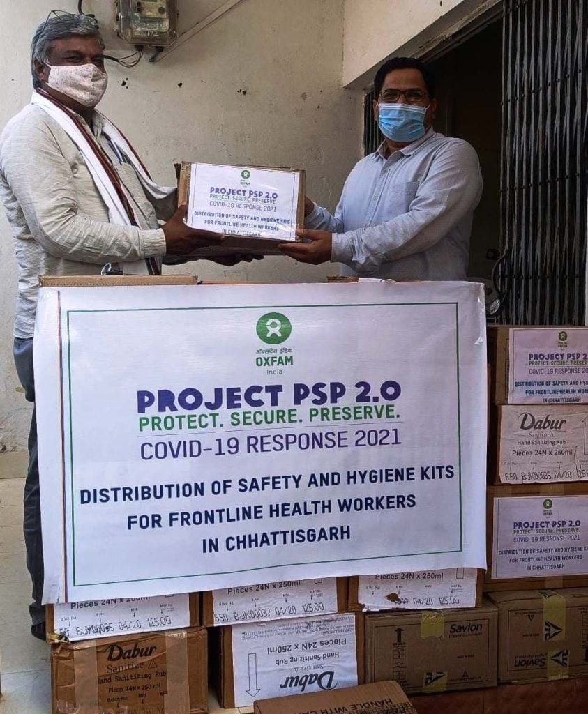 साथी संस्था के तत्वाधान में ऑक्सफैम इंडिया द्वारा महिला एवं बाल विकास की आंगनबाड़ी कार्यकर्ताओं के कोरोना से बचाव एवं संक्रमण के प्रसार के रोकथाम हेतु 150 सेट सुरक्षा किट प्रदाय किया गया। कोरोना के संक्रमण के रोकथाम हेतु आंगनबाड़ी कार्यकर्ताएं फ्रंटलाइन वर्कर के रूप में राशन वितरण, कोविड टीकाकरण और जांच तथा टीकाकरण में शामिल है। इनकी सुरक्षा को ध्यान में रखते हुए साथी संस्था, कुम्हारपारा कोंडागांव द्वारा ऑक्सफैम इंडिया एनजीओ के सहयोग से 150 सुरक्षा किट जिसमे एन-95 मास्क, हैंड सैनिटाइजर, हैंड ग्लव्स, हैंडवाश और फेस शील्ड आज जिला महिला एवं बाल विकास कार्यालय को साथी संस्था से श्री भूपेश तिवारी एवं विभाग की ओर से श्री रविकांत, जिला महिला एवं बाल विकास अधिकारी की उपस्थिति में प्रदाय किया गया। संकट की इस घड़ी में साथी संस्था का सहयोग अमूल्य है।